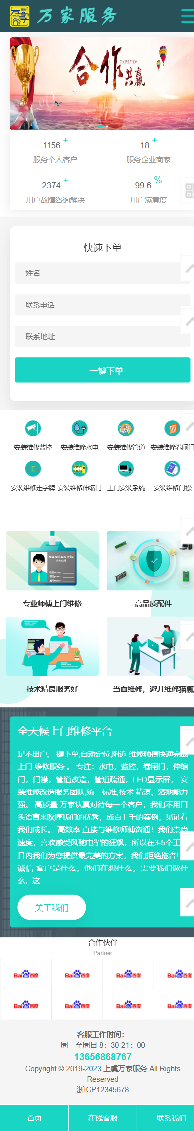 (自适应手机版)响应式电脑家政修理公司蓝色HTML5电脑修理维修店网站源码